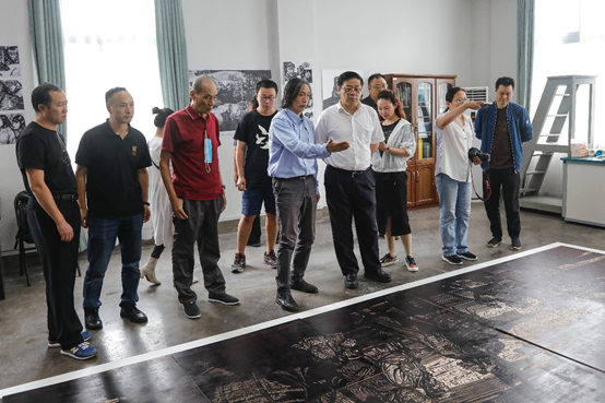 为迎接中国共产党成立100周年,中央宣传部、中国文联、财政部、文化和旅游部将联合主办,由中国美术家协会承办的“不忘初心继续前进——庆祝中国共产党成立100周年大型美术创作工程”,已进入了巡视审稿阶段。建党百年大型美术创作工程组委会领导及专家组成员中国美术家协会分党组书记,驻会副主席徐里,中国美协副主席、重庆市美协主席、重庆美术馆馆长、四川美术学院院长庞茂琨,党史军史专家单劲松、赵宇、陈伙成,中国文联美术艺术中心副主任李伟,中国美术家协会办公室主任章云,中国美协信息处副处长杨萍,中国文联美术艺术中心艺委会工作处副处长贺绚绚,及随行的北京电视台等媒体界朋友、工作人员一行于9月14日赴我校戴政生教授木刻创作室进行巡视审稿工作,校党委书记李旭锋、校长张卫国分别会见了与会专家。