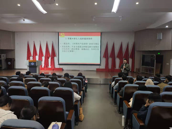 岳洋老师介绍本期党校培训班的教学计划和纪律要求,要求所有党校学员珍惜学习机会,进一步端正入党动机,严格遵守规定,互帮互助,以饱满的学习状态投入到党校学习中。