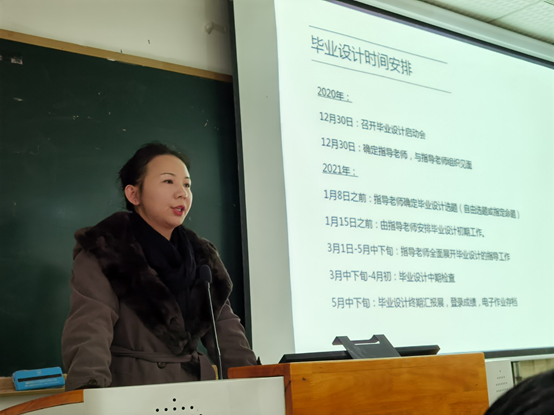 学生代表朱明睿表示一定遵守学校相关规定,认真做好毕业设计工作,为大学生涯画上一个圆满的句号。指导教师代表黄迎春作动员讲话,希望同学们严格要求自己,遵守学术规范,在导师的指导下,努力认真修好最后一门课。