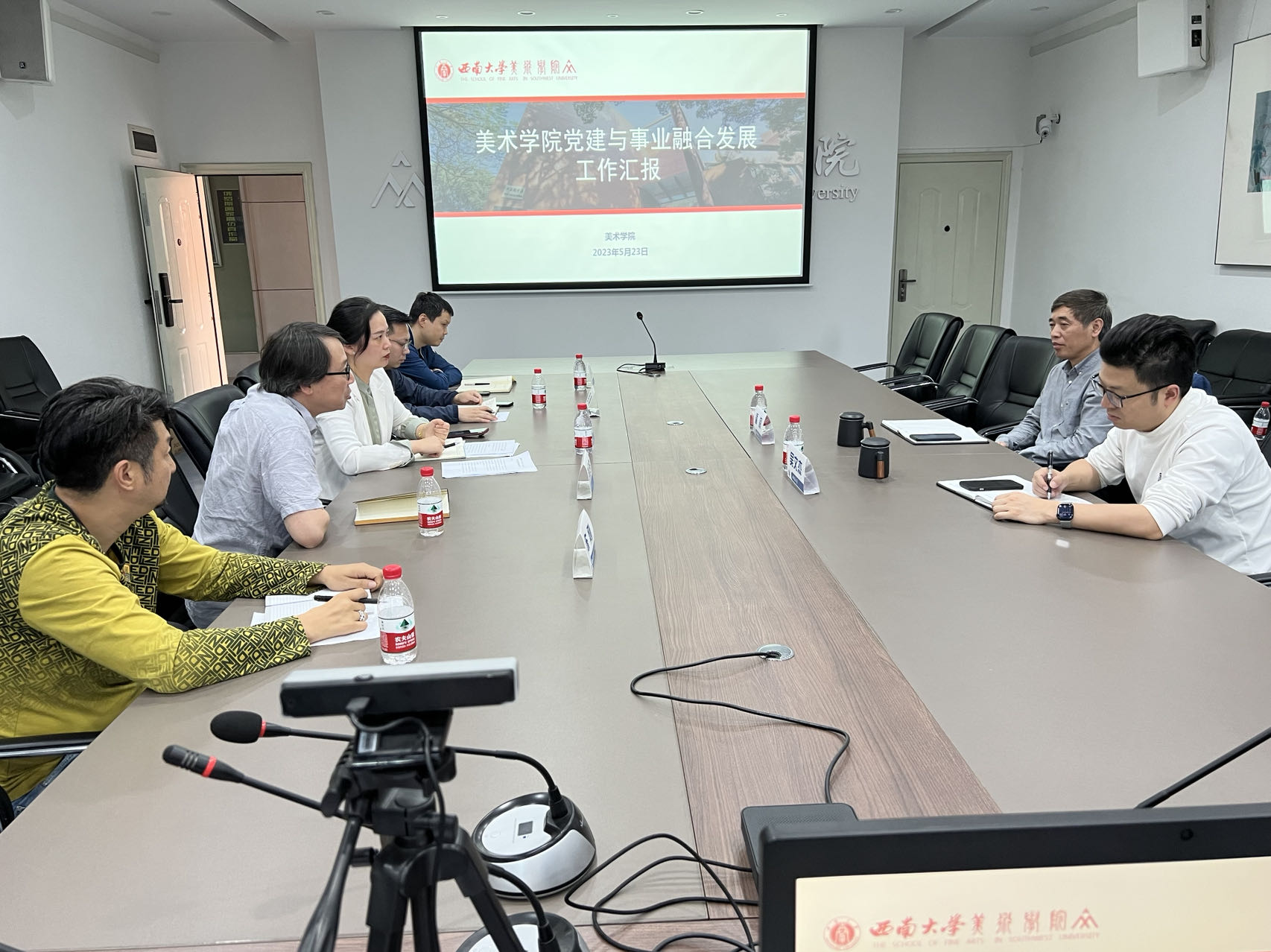 潘洵书记在总结讲话中肯定了学院党建与事业融合发展工作成效,并提出三个方面的工作意见和建议。一是抓住重点,形成共识,着力突破学科瓶颈;二是整合力量,打造成果,做有组织的科研;三是强化交流,校地合作,为北碚区文化建设多做贡献。潘书记强调,要以主题教育为契机,深入学习习近平总书记关于文艺工作、艺术创作的重要讲话精神,原原本本学、结合工作学,坚持知行合一、学以致用,大力推进以高质量党建引领事业高质量发展。