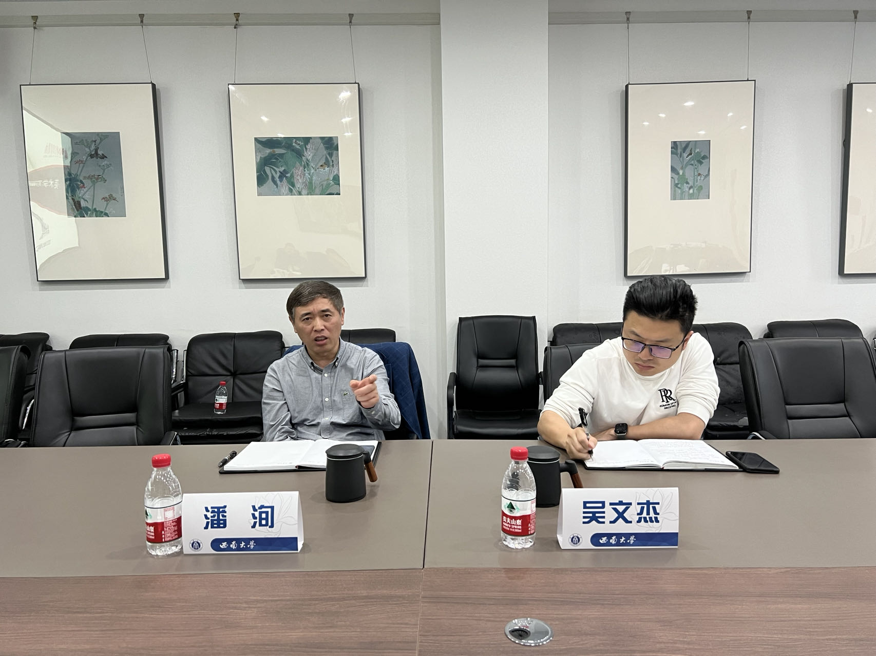 5月23日下午,学校党委副书记潘洵一行来院开展学习贯彻习近平新时代中国特色社会主义思想主题教育调研座谈,党政办公室副主任、政策研究室主任(兼)吴文杰及学院全体领导班子成员参会。