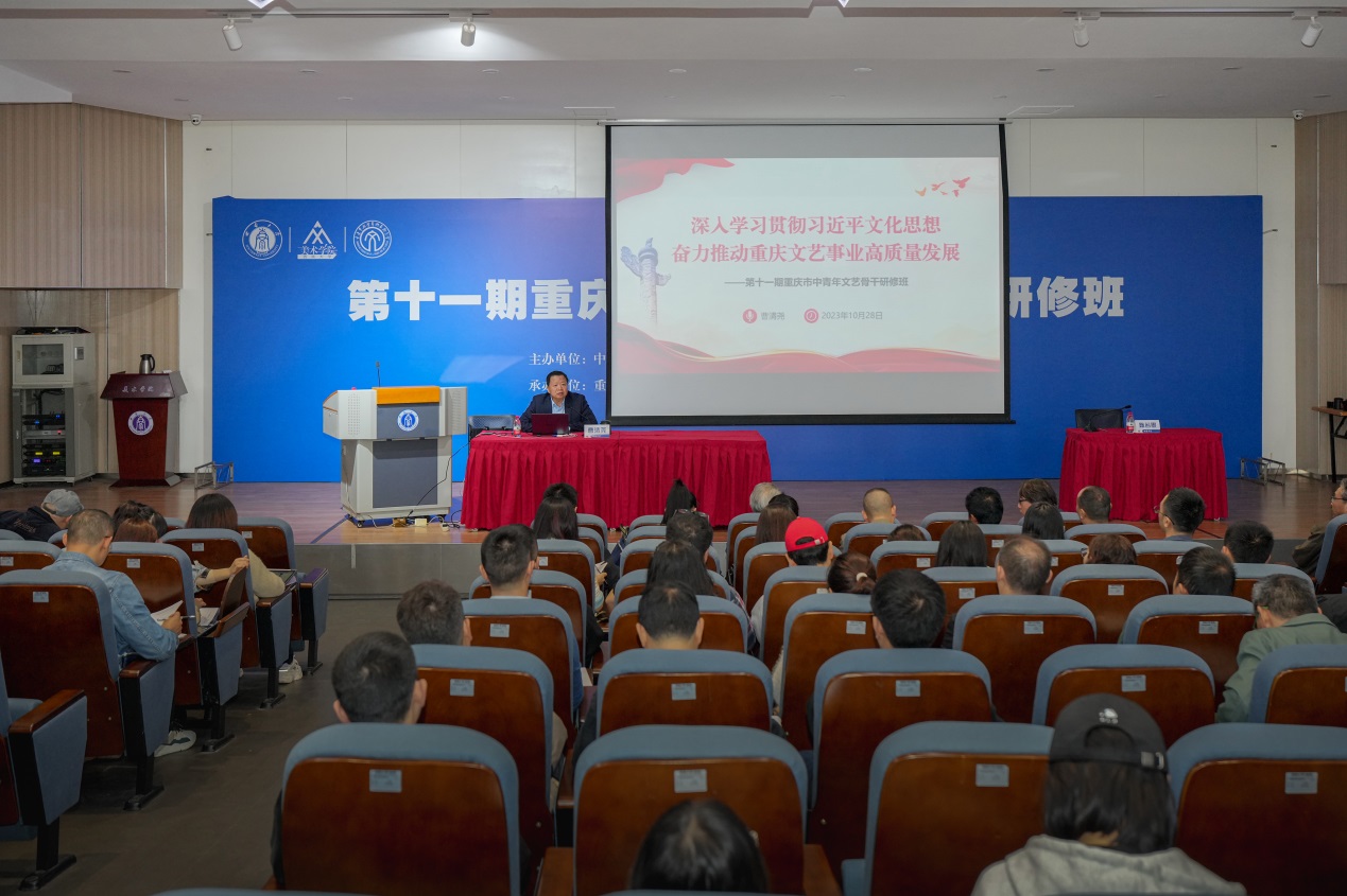 开班仪式结束后,曹清尧以“深入学习贯彻习近平文化思想,奋力推进重庆文艺事业高质量发展”为题讲授开班第一课,从习近平文化思想形成的过程和提出的重大意义、丰富内涵和精神实质以及我市文艺事业发展的现状三个方面,系统解读党中央对繁荣发展文化事业和文化产业作出的总体部署,强调文艺工作者需切实增强新时代新征程宣传思想文化工作的责任感使命感。