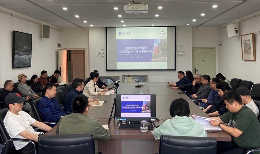 2025年4月9日,美术学院召开2025届毕业生就业工作推进会。学院党委书记张瑜,党委副书记、纪委书记经刚,学院副院长彭伟,学院研究生导师,就业帮扶团相关导师和毕业年级辅导员参加会议。会议由学院党委副书记、纪委书记经刚主持。