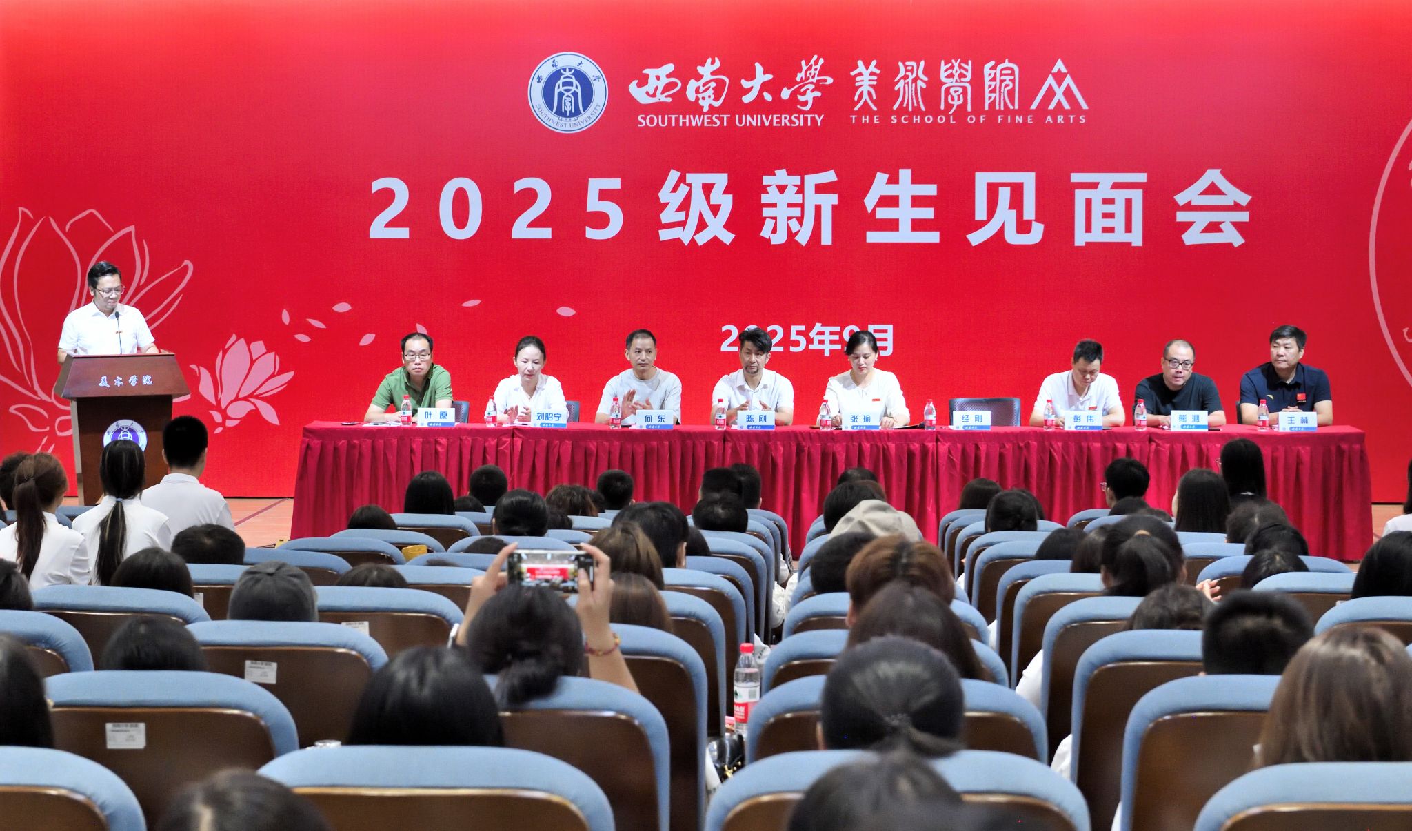 最后,美术学院2025级新生见面会在师生齐唱校歌中圆满结束。见面会结束后,学院继续开展培养方案讲解、专业导论等新生入学教育。