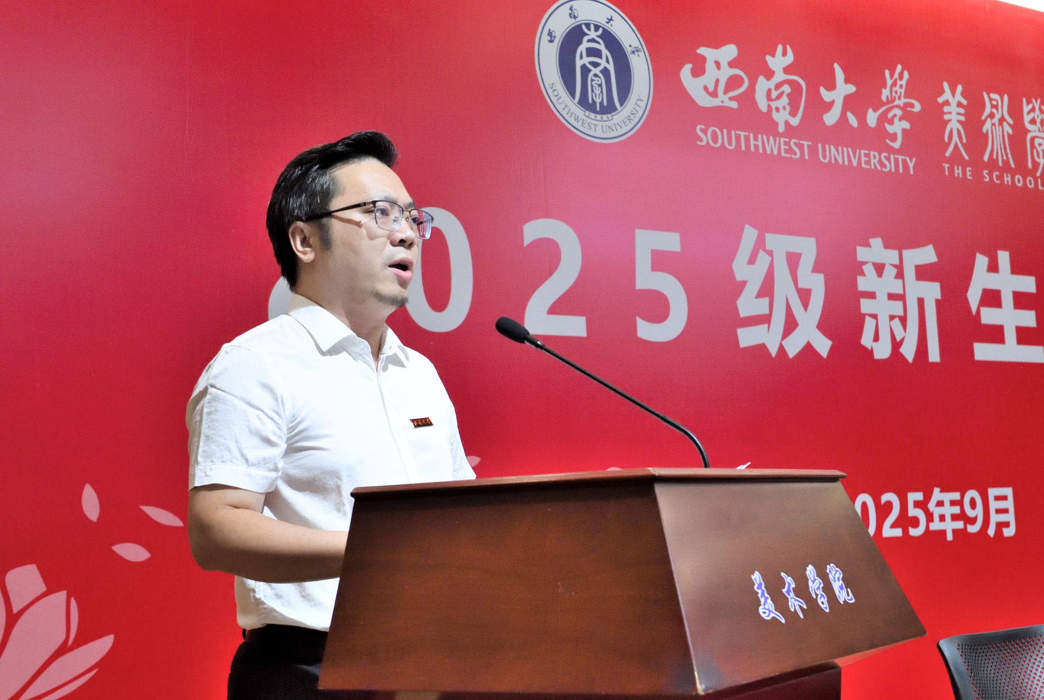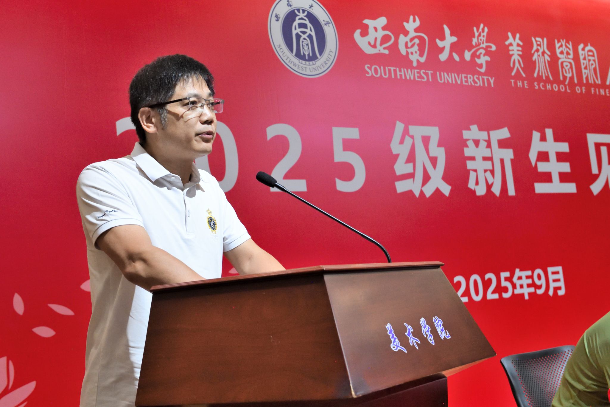 张瑜书记代表学院党政班子以及全院师生,向2025级新同学表示热烈欢迎。随后张瑜书记回顾了学院一百年的发展历程,介绍了学院优良的办学传统和深厚的学术底蕴,对新时代的艺术学子提了四点希望:“心怀家国,立德为先”“潜心向学,精进技艺”“ 勇于创新,兼容并蓄”“融入集体,全面发展”,以此勉励新生,在best365英国体育在线美术学院这片热土上,尽情挥洒才华与汗水,用心感受艺术与生活的美好,用手中的画笔和心中的热爱,描绘出属于2025级的绚烂青春,书写出无愧于时代、无愧于人民的精彩华章。