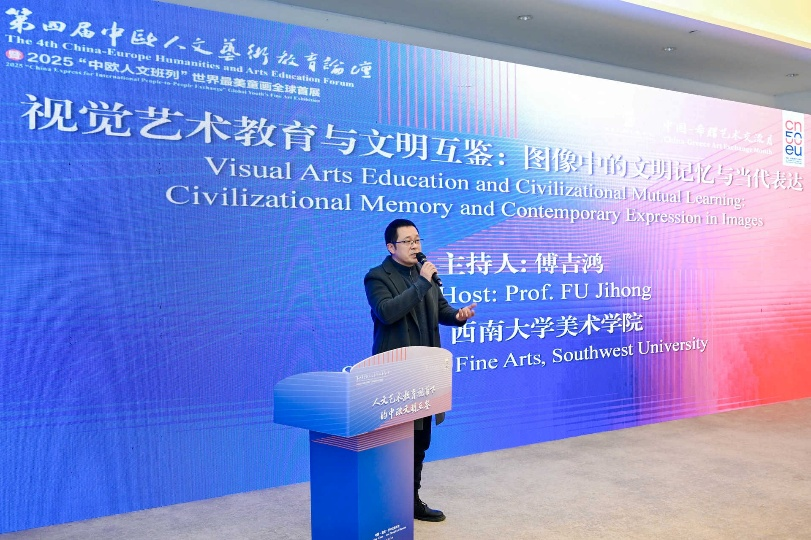 学院积极组织专家教授参与此次中欧人文艺术交流活动,学院傅吉鸿教授主持了以“视觉艺术教育与文明互鉴”为主题的主旨分享活动,学院聘任的巴渝学者陈治教授发表了题为《对西方经典绘画的东方转译》的专题报告。陈治教授结合其艺术实践与理论研究,生动阐释了如何在当代艺术创作与教育中,实现西方艺术经典的本土化解读与创造性转化,为文明互鉴提供了具体的艺术方法论案例,引发了在场学者的热烈讨论。