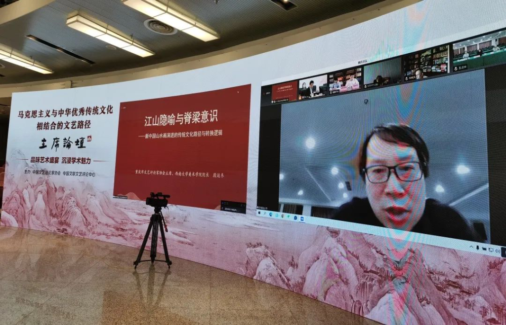 4月11日,我院院长、市评协主席段运冬在“马克思主义与中华优秀传统文化相结合的文艺路径”主席论坛上作《江山隐喻与脊梁意识——新中国山水画演进的传统文化路径与转换逻辑》主题演讲,得到国内业界、学界和公众的大量好评。