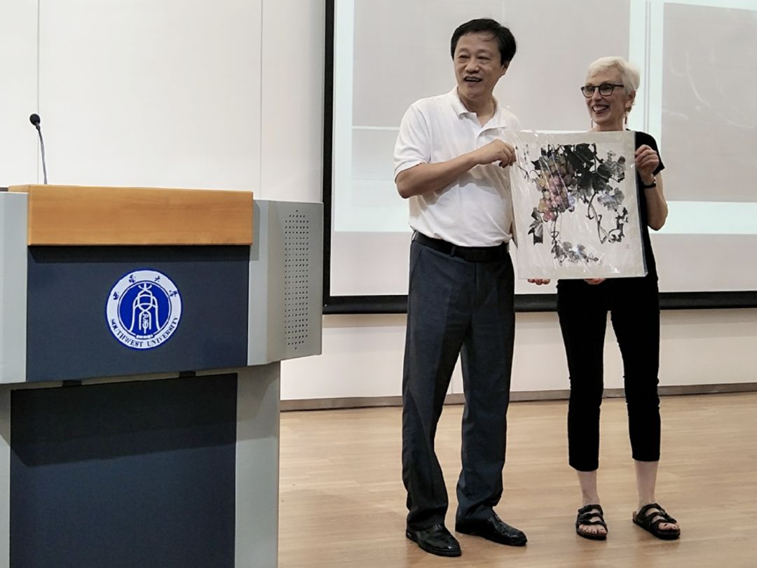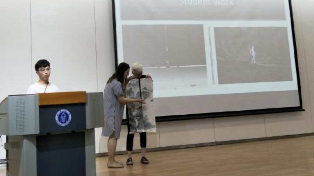 苏甦教授最后代表学院向Judith Briggs教授赠送了自己的国画作品,欢迎Judith教授再次来我院交流。其他同学们也将自己的作品送给Judith Brigg教授表示感谢。