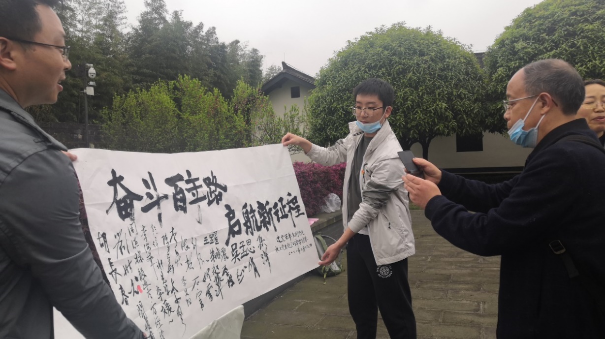 党员们通过参观主题展馆、听取讲解等方式,领略了两位伟人一生为新文化运动、为中国革命和建设事业做出的卓越贡献,接受了一次“不忘初心,牢记使命”的政治洗礼,鼓起了迈进新征程、奋进新时代的精气神,培育了爱岗敬业,立德树人的高尚情操。参观之余,各位党员有感而发,现场进行书法创作并题名。