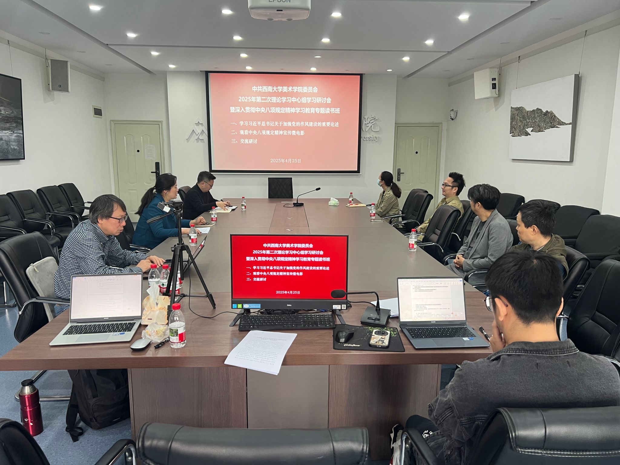 4月25日上午,学院党委理论学习中心组在214会议室召开2025年第二次学习会暨深入贯彻中央八项规定精神学习教育读书班集中研讨,会议由党委书记张瑜主持,学院领导班子成员、党委委员参会。