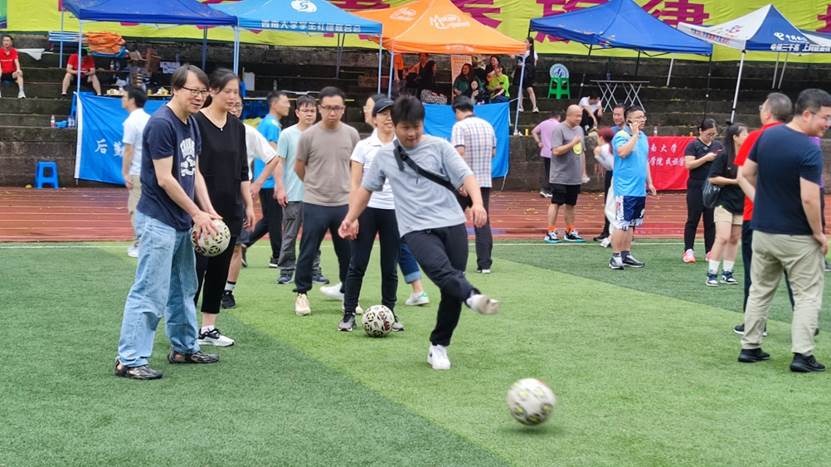 春暖花开之际,学校第十七届春季田径运动会暨体育文化节如约而至。学院精心组织选派了30余名教职工参加了运动会,不仅有广播体操、1500米、铅球等常规项目,还有毛毛虫接力、智传呼啦圈、运球上篮接力、足球射门接力等趣味项目。虽然运动会期间天气较为阴冷,偶有小雨,但依然抵挡不住老师们的热情,在蒙蒙细雨中积极参加各种比赛,运动场上加油和助威声不断。