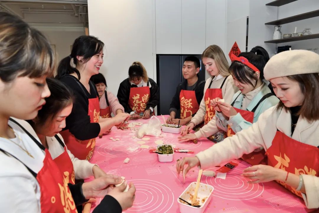 活动现场,重庆市工艺美术大师、剪纸传承人梁素老师手把手指导中外学生剪窗花,看着一张张红纸在自己手中变成各式各样的窗花纹样,来自埃及的留学生乔菲儿表示,这样的体验活动让她觉得十分有趣,自己也特别喜欢中国传统民俗。另一边,学院师生与留学生们一起擀面皮、包饺子、讲民俗、话家常,并合作完成龙年主题创意蔬果盘,在沉浸式领略中国传统文化魅力的同时,以中国传统艺术形式为载体传递新春祝福。