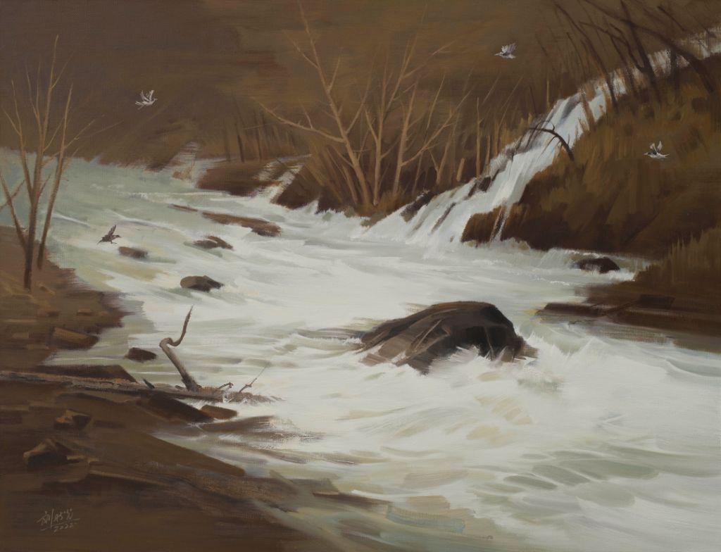 我自幼生活在大巴山区,那里山峦起伏,草木繁茂,溪流纵横,河流延绵,生生不息,依水而居的缘故,我对水有一份特殊的情感。上世纪80年代之前,我生活的小镇是没有自来水的,到河中担水回家满足生活之需是常态,洗衣洗菜等生活必需更是在河边完成。一年四季,多数时间河水清澈,鱼翔浅底;浑浊之时,那就是在夏季,山洪暴发,无数溪流裹挟着泥沙汇入江河,河水猛涨,淹没地势较低的农田、村庄和城镇,洪水过后,又恢复平静,人们担水、洗衣、做饭,生命延续,获取自然的馈赠。