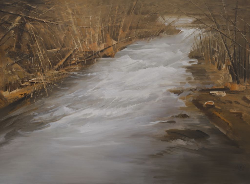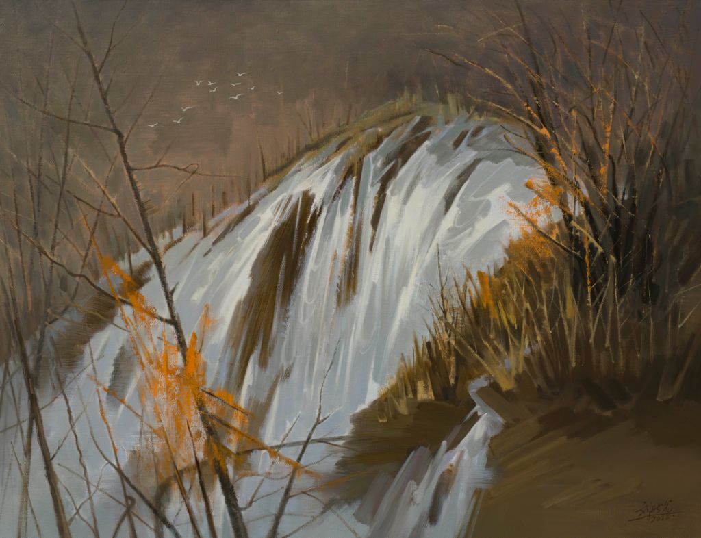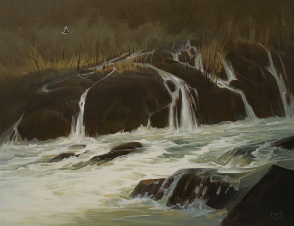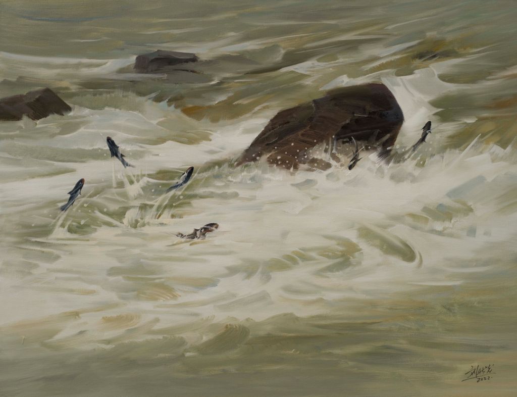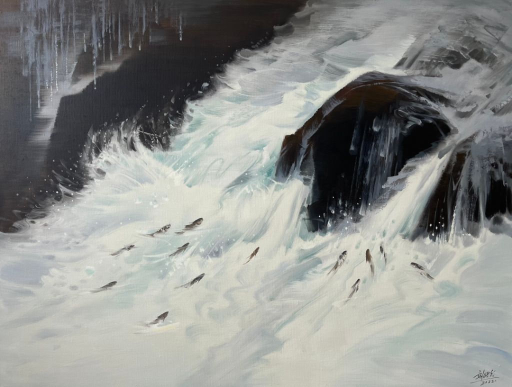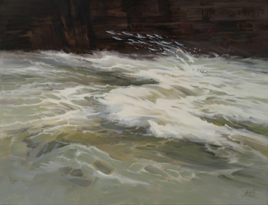 水,生命之源。俗话说雨露滋润禾苗壮,冰雪消融,流水潺潺,润泽大地,生命的逝去与生命的重生在循环往复间悄然转换。水是平淡的,却又彰显着自己的性格,滋养万物而不争,以柔弱而刚毅的姿态孕育万千物种,敬畏水,就是敬畏自然,敬畏生命,人类及其赖以生存的物种多样性由此而生,在时间的流逝中生息转换。知者动,仁者静,这或许就是我以水为媒画《活力源系列》的动因所在。