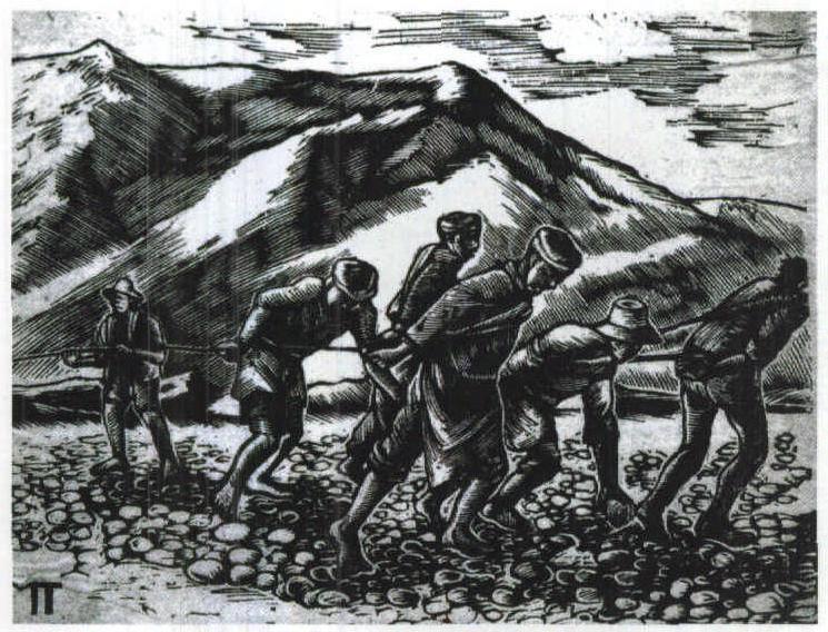 《纤夫》 黑白木刻 1942年 |