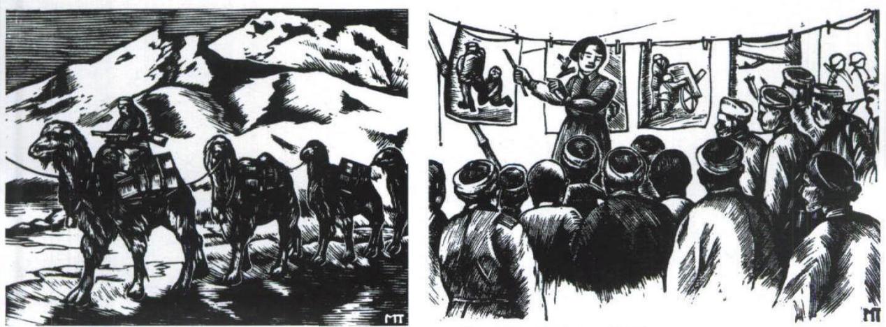 《支援抗日军》 黑白木刻 1939年 |
