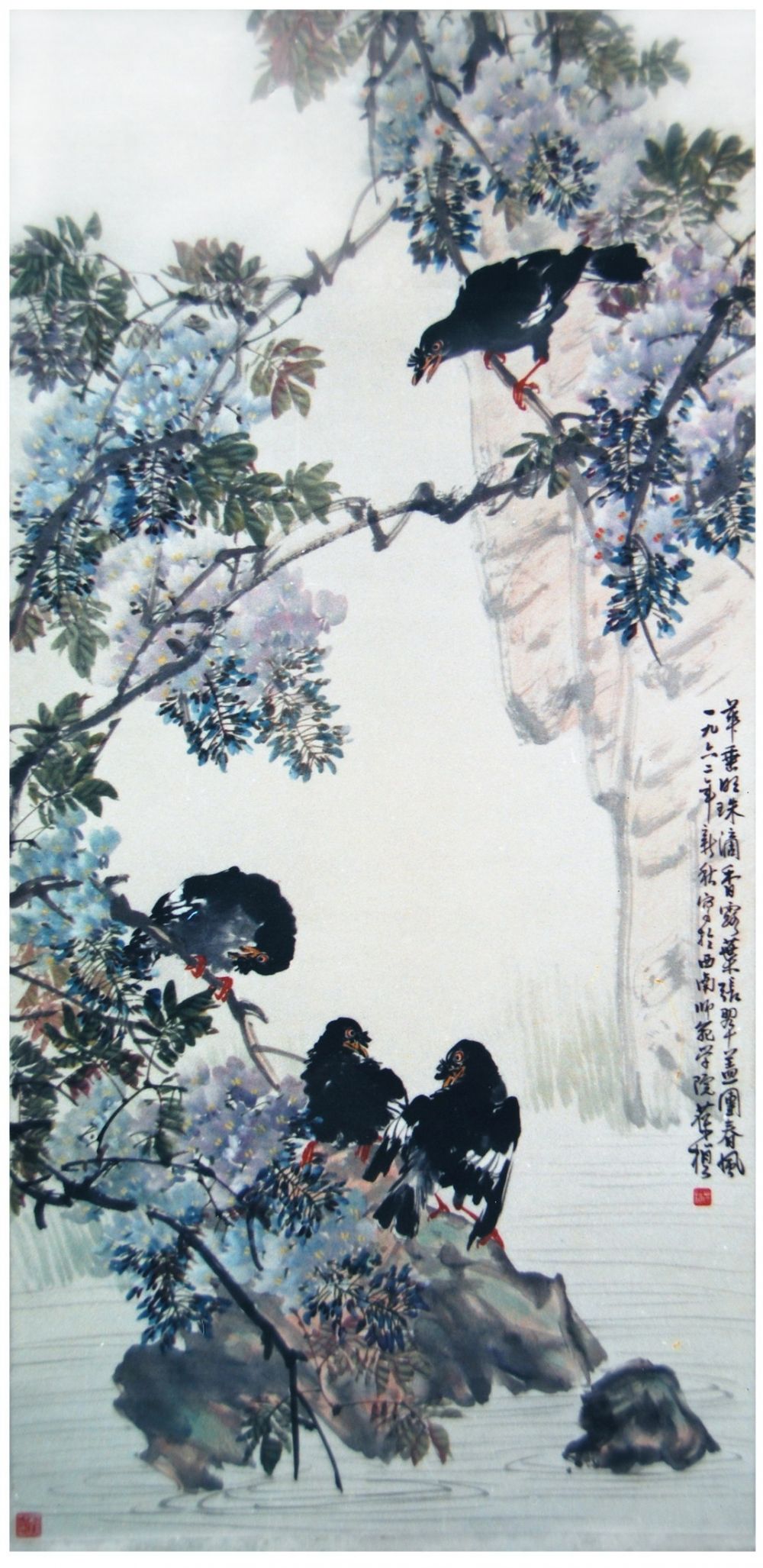 《八哥紫藤》 1962年 180cm×90cm 中国画 |