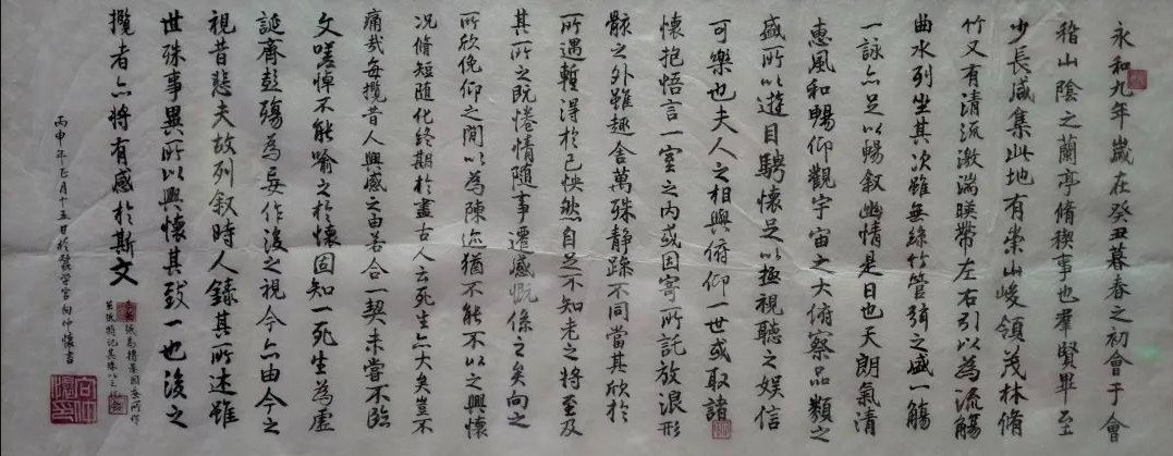 特邀作品:向仲怀《临兰亭序》 转基因蚕丝布 40×93cm 2016年